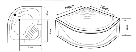 Whirlpool, Jacuzzi system with touch or penumatic on/off. Air system LED Light system (7 Colors) Headrest, Bathpillow SS Handles Waterfall Height adjustable legs Automatic and normal overflow