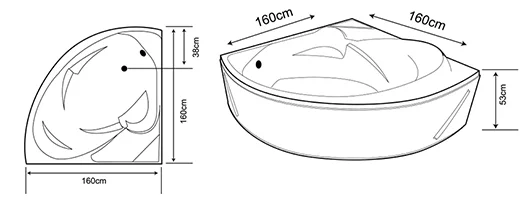 Whirlpool, Jacuzzi system with touch or penumatic on/off. Air system LED Light system (7 Colors) Headrest, Bathpillow SS Handles Waterfall Height adjustable legs Automatic and normal overflow