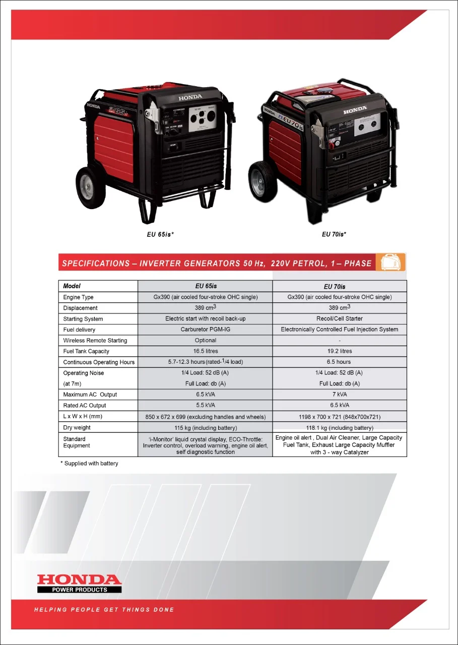 Honda EU70iS 7.0 KVA Recoil start + Electric Start – with battery Made in India