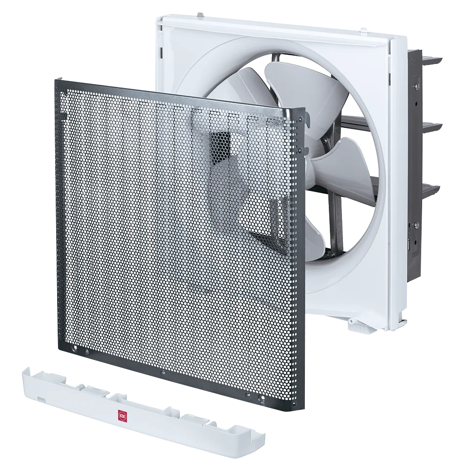 Exhaust filter type The fan shall be suitable for wall mounting Condenser motor with thermo cut-off Well lubricated bearing for long life operation Perforated aluminum filter being competent in collecting oil Filter coated with hydrophobic material allows easy cleaning Propeller fan incorporated with"Advanced blade design"enables powerful Airflow at low noise Large capacity oil cup with oil indicator equipped for collecting oil drops effectively Pre-painted steel frame and shutter strengthen product durability Automatic shutter Installation size = 300 x 300 mm Safety design base on IEC requirement Our global product had been approved by each country requirement