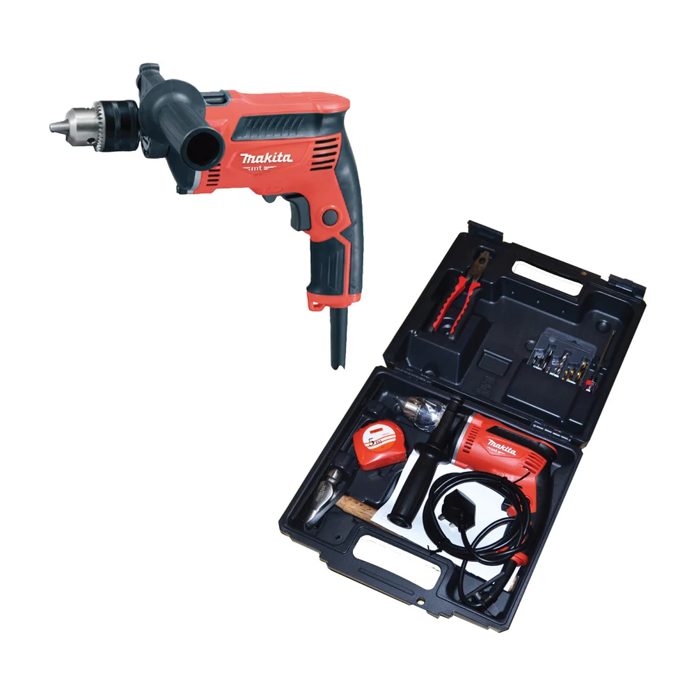 Continuous rating Input ? 430W Capacity ? Concrete: 13 mm, Steel: 13 mm, Wood: 18 mm No load speed (rpm) ? 0 ? 3,000 Impacts Per Minute (IPM) ? 0 ? 33,000 Side Handle, Depth Gauge, Chuck Key, Chuck Key Holder, Carry Case with Accessories set