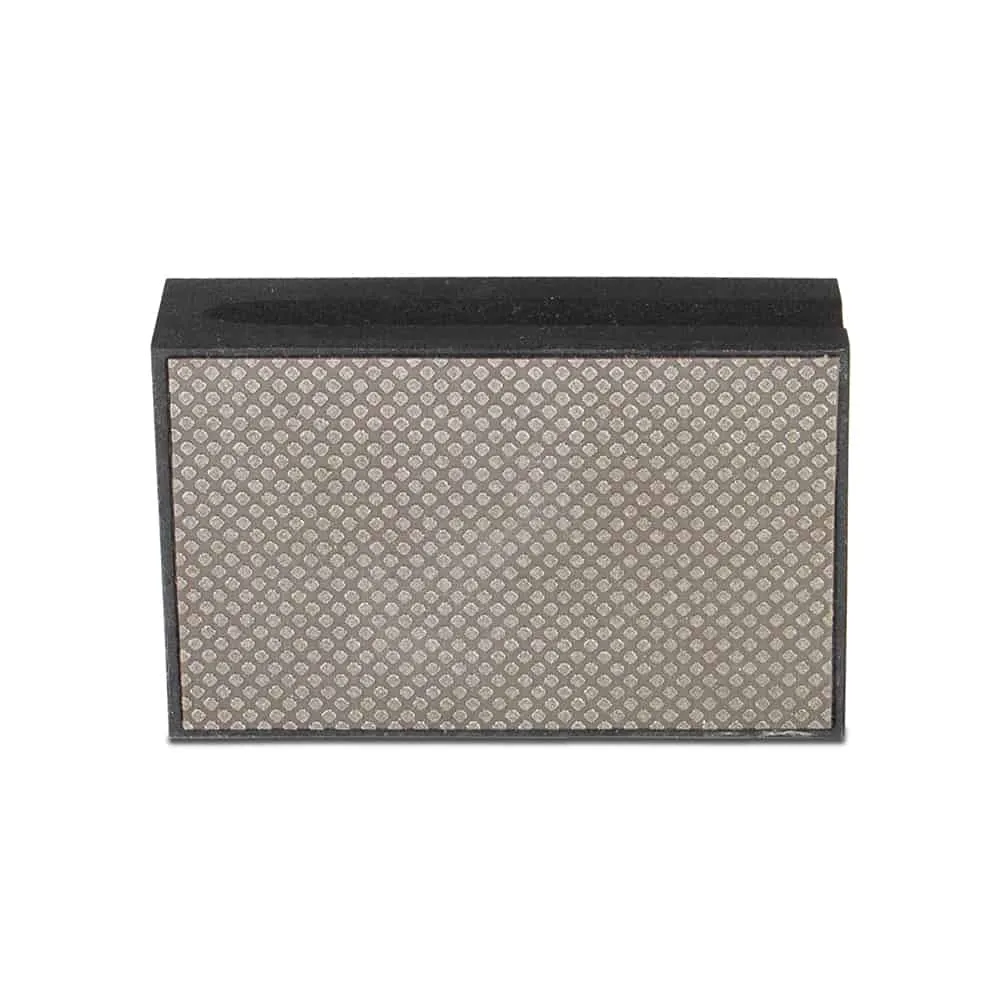 Rubi" Manual diamond polishing pads The range of RUBI manual diamond polishing pads is ideal for edge grinding and polishing, both for surface cuts of natural stone and ceramic tiles. The RUBI manual diamond polishing pads are semi-flexible diamond and their EVA body means they have excellent adaptation to the user"s hand. The grip has a side slit that increases the ergonomics of the block and reduces hand fatigue during use. Dimensions of the diamond plate 55"90 mm, Rubber pad dimensions 58x94x30 mm.